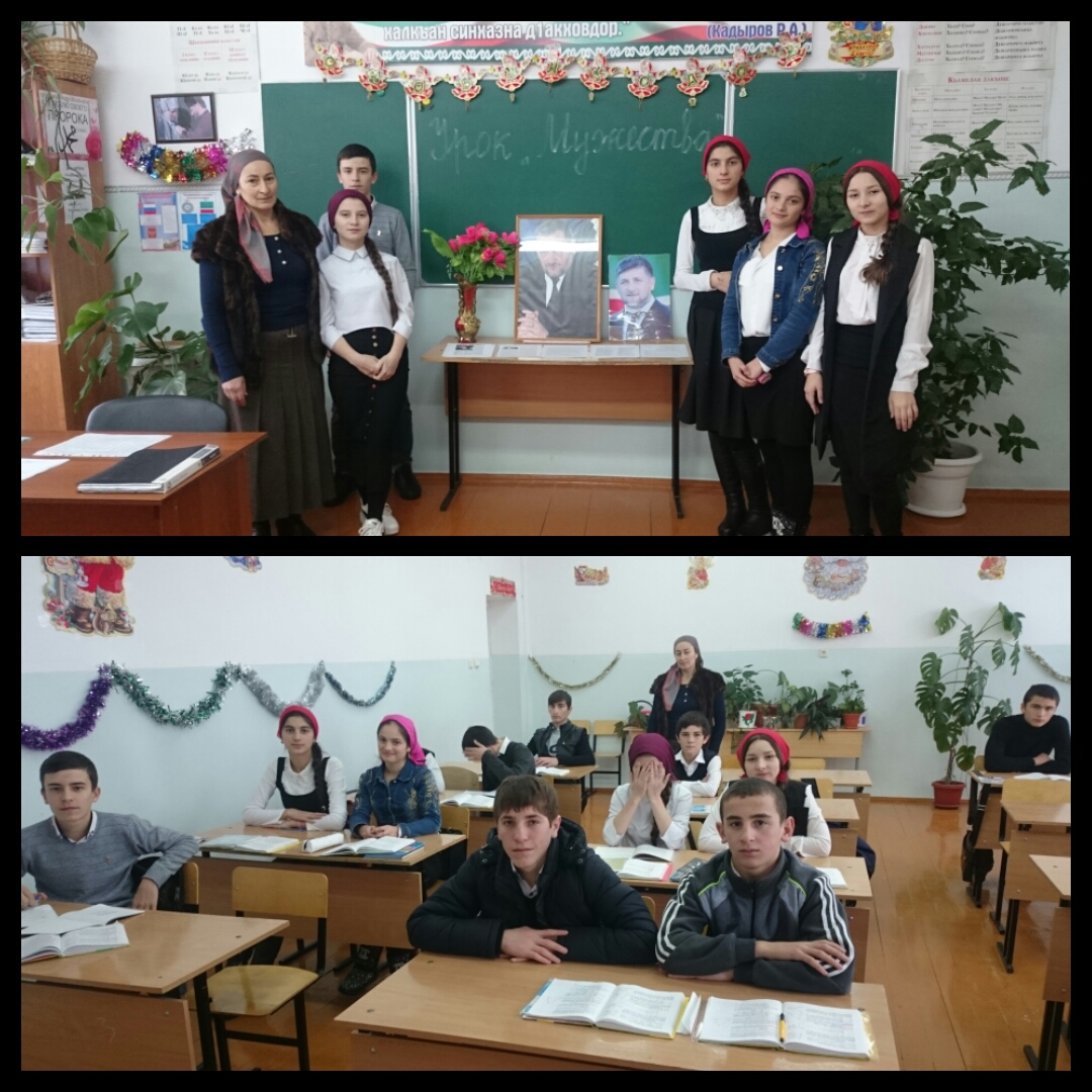 09.12.2016Открытое мероприятие приуроченный к празднику "День героев Отечества" провела учительница МБОУ "Элистанжинская СОШ" Гунакбаева З.Ш. в 9"Б" классе на тему: "Урок мужества" (Памяти первого Президента Чеченской Республики, Героя России Ахмат-Хаджи Кадырова).