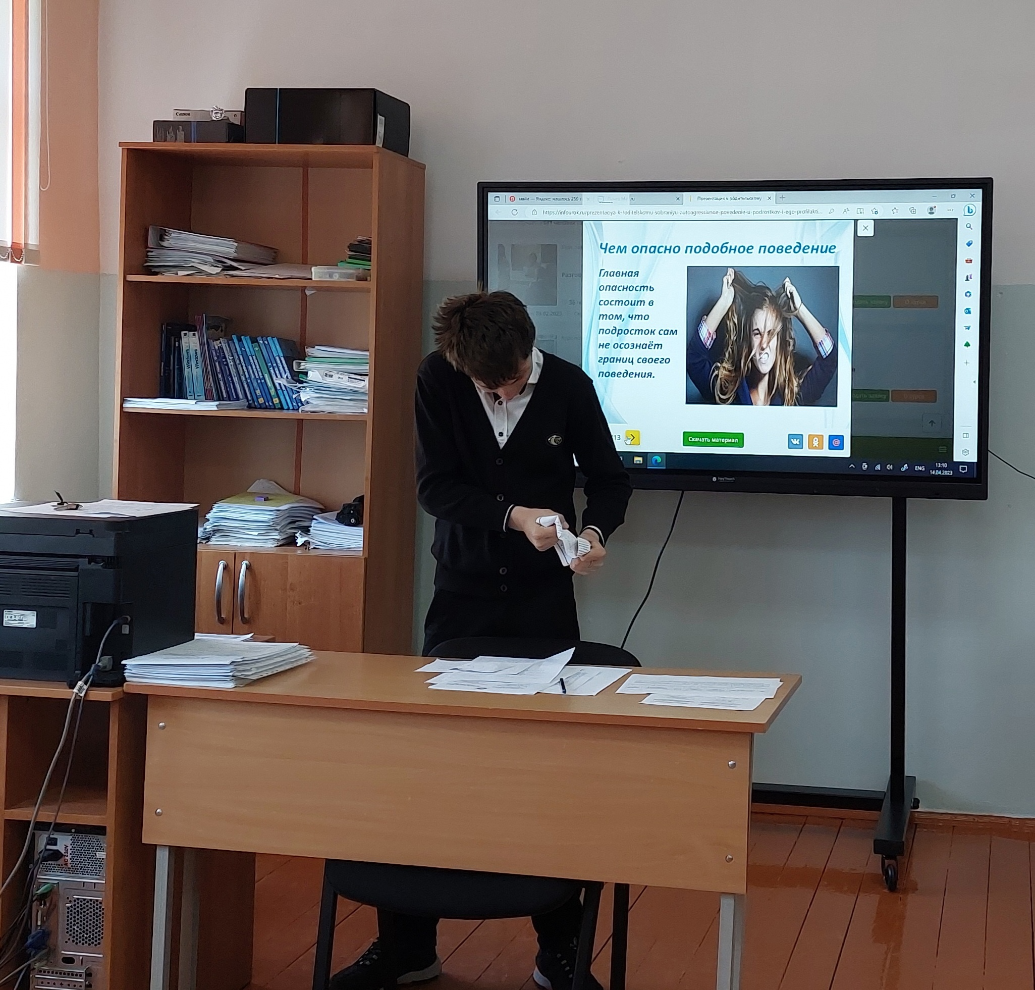 Беседа с учащимися 8-х классов в игровой форме "Аутоагрессия и ее профилактика", направленная на противодействие распространению новых форм противоправных действий несовершеннолетних, в том числе вовлечения их в аутоагрессивное поведение, увеличению рисков совершения ими правонарушений.