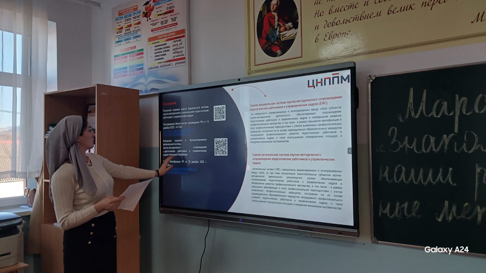 29.11.202329.11.23 в МБОУ «Элистанжинская СОШ им. Битимирова Х.Х.» был проведён семинар по ознакомлению с материалами данного марафона. Заместитель директора по УВР Хукаева Л.Б.-М. ознакомила присутствующих со структурой, задачами и функциями Региональной системы научно-методического сопровождения ЧР.
