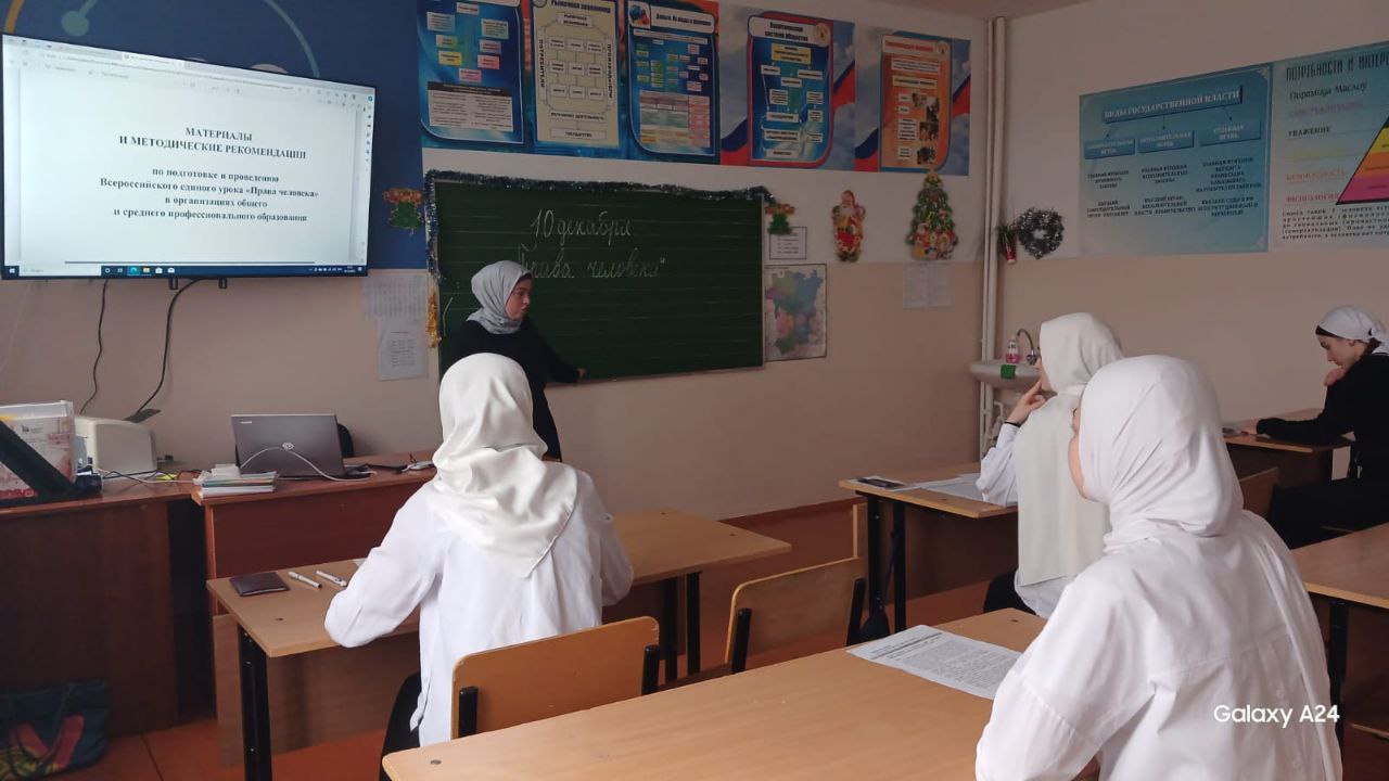 08.12.20238 декабря 2023г. в 11 классе учителем истории и обществознания Гакаевой Ж.Р. был проведен Всероссийский единый урок «Права человека», приуроченный к Международному дню прав человека.Прививая с ранних лет уважение к правам каждого человека, взрослые одновременно вырабатывают у ребенка механизм защиты и своих прав, и прав другого человека. При этом, узнавая о своих правах, человек понимает, что у него есть и обязанности. Именно об этом была речь в материалах единого урока.