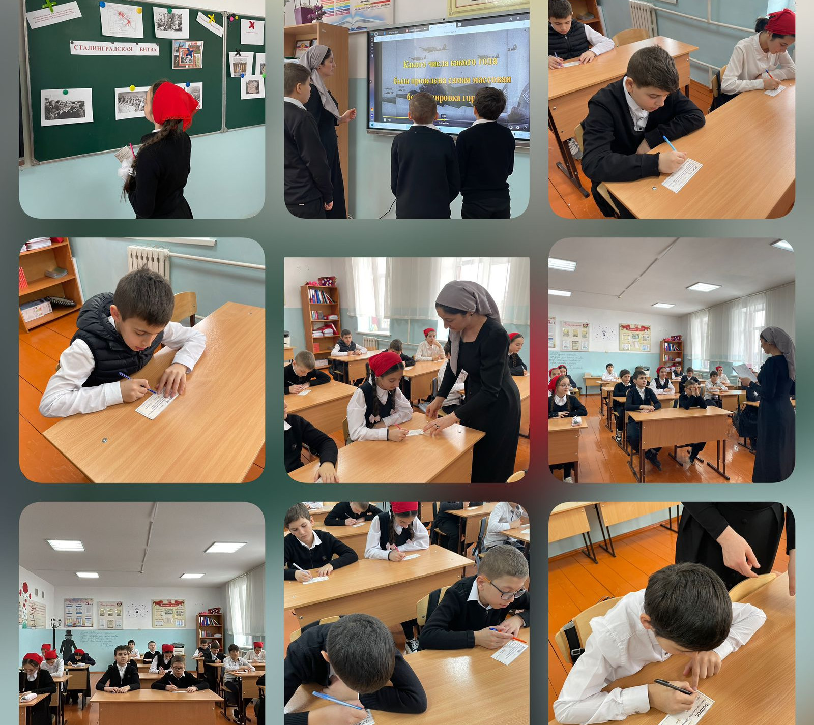 2 февраля мы отмечаем День воинской славы России — День разгрома советскими войсками немецко-фашистских войск в Сталинградской битве в 1943 году. Ребята узнали о героизме и мужестве наших солдат, о командном составе, о подвигах медсестер, познакомились с историческими памятниками той великой битвы: Мамаевым курганом, домом Павлова, музеем-панорамой «Сталинградская битва». Во время просмотра учащимся предлагалось ответить на вопросы о ходе и героях сражения. Затем обучающиеся приняли участие в интерактивной викторине «Сталинградская битва». Мероприятие позволило проникнуться чувством гордости за наших соотечественников.