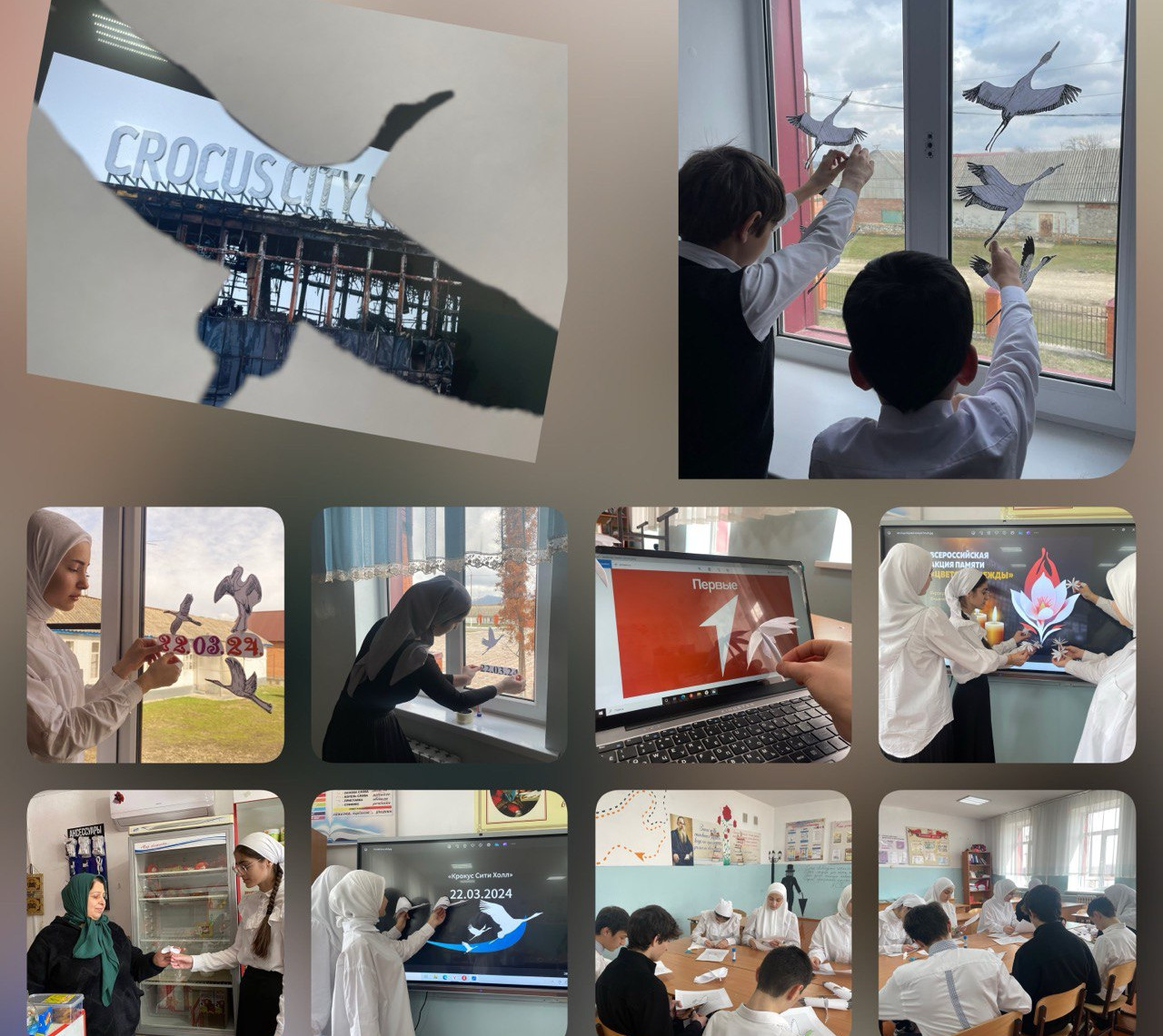 МБОУ «Элистанжинская СОШ им. Битимирова Х.Х.» присоединилась к масштабной акции «МЫ ВМЕСТЕ», которая проходит во всех регионах России. В знак скорби о жертвах террористического акта, который произошел в «Крокус Сити Холле» 22 марта, мы разместили на окнах бумажных журавлей и цветки крокуса, вырезанные собственными руками.